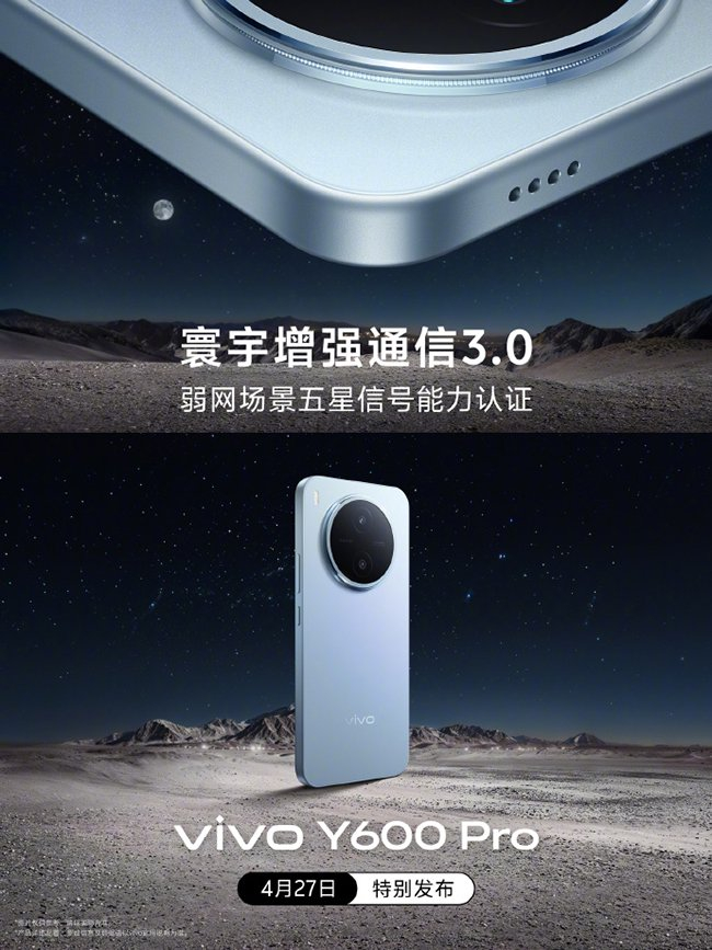 万级续航 + 五大黄金标准,vivo Y600 Pro 定档4月27日