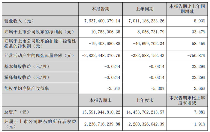 基本每股收益为 - 0.02 元 / 股,上年同期为 - 0.03 元 / 股;加权平均净资产收益率为 - 2.64%,较上年同期的 - 5.30% 提升 2.66 个百分点。