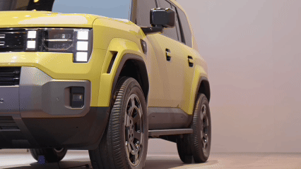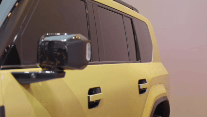 首先,这台车做到了科技与硬派的融合。方正大气的轮廓,超高的离地间隙,短前后悬,加上越野老炮最爱的尾门侧开设计,以及直风挡的造型,把新一代方盒子美学拿捏住了。