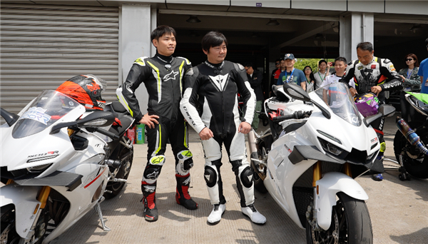 这是张雪参加的一场由懂车帝趣玩车策划的赛车活动。在安全指导下,他与现场摩托车爱好者在专业赛场进行试骑。