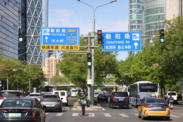 早上9点,记者在朝阳路看到,虽然已过早高峰,但路面车流仍处于高位运行,道路中央主路最外侧BRT2线使用的公交专用道已调整为工作日7—9时、17—19时启用,社会车辆按照指示标志进入公交专用道行驶,道路运行基本畅通。