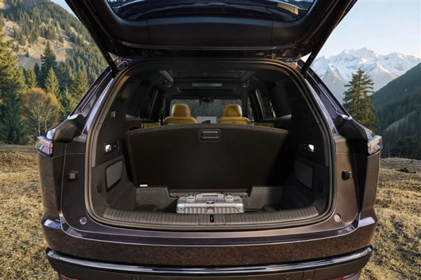 取消第三排后,全部空间留给两排乘客和储物。后备厢常规容积1200L,是中国量产SUV中最大的;二排完全放倒后拓展至2600L,纵深达2200mm,加上240L前备厢,整车最大储物空间达2840L。目前国内大五座SUV后备厢放倒后普遍在1500-1800L,乐道L80直接超出同级一大截。