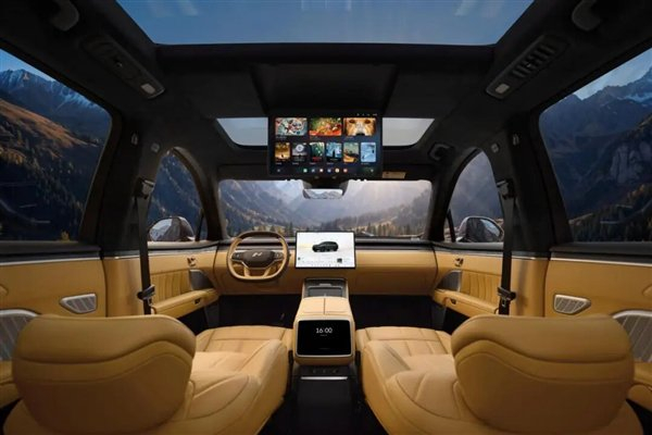 提供桂庭黄、云缦米、曜夜黑、月榕棕四种豪华内饰主题,旗舰级环抱座舱设计,融合超纤绒顶棚、浮光真木饰板和星河幻境环舱氛围灯。全舱四屏布局,搭载高通骁龙8295P芯片与17.2英寸3K横置中控屏。
