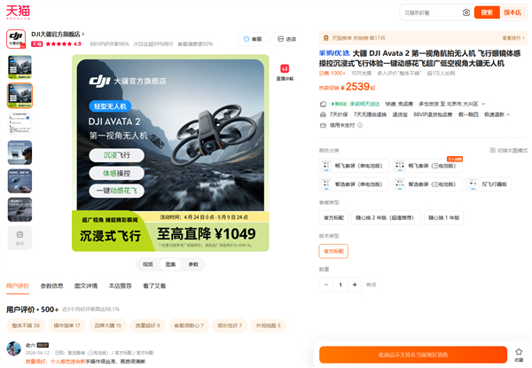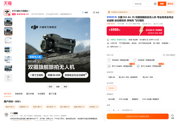 大疆北京门店今日16点后停售无人机!天猫官旗已无法下单