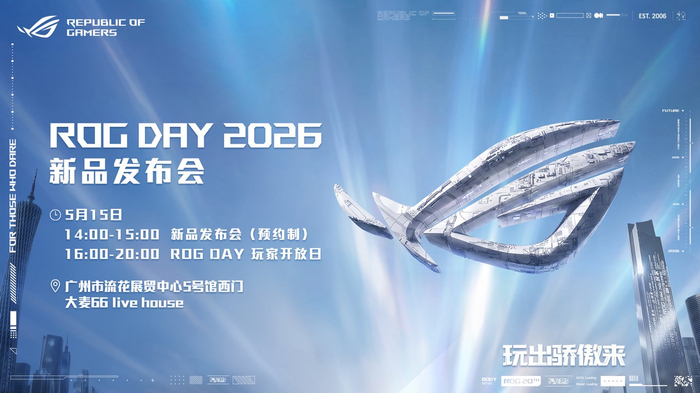 IT之家 4 月 29 日消息,华硕 ROG(玩家国度)今日宣布,ROG DAY 2026 广州站活动将于 5 月 15 日在广州市流花展贸中心大麦 66 livehouse 举行。
