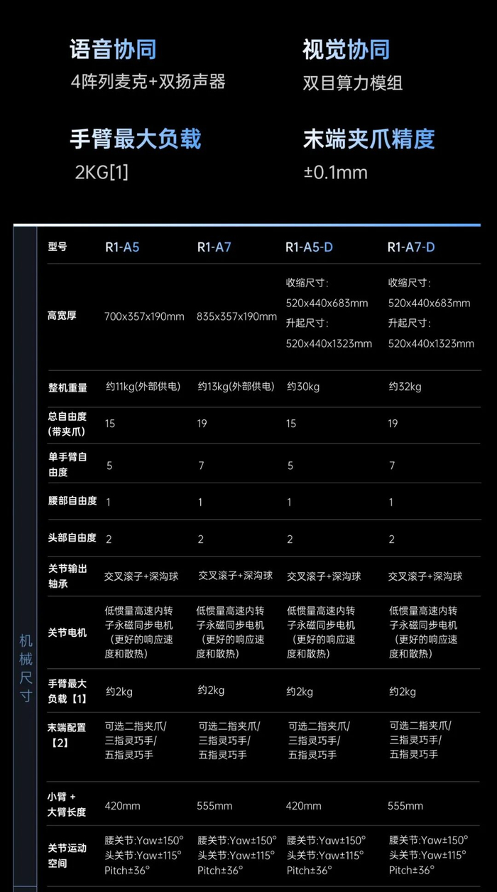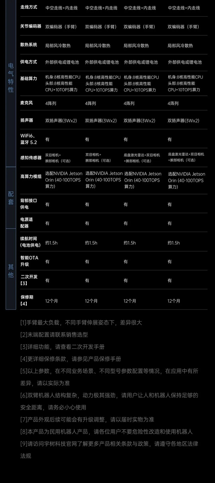 宇树双臂人形机器人可选四个版本,IT之家附配置表如下: