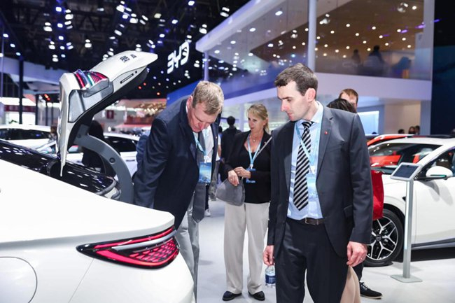 展馆现场更有大量海外观众与国际媒体驻足围观,外国友人在车型与技术区反复体验、不停拍照,纷纷发出惊叹:“Chinese EV is amazing!”“BYD number one!”,对比亚迪的产品实力与技术创新赞不绝口。