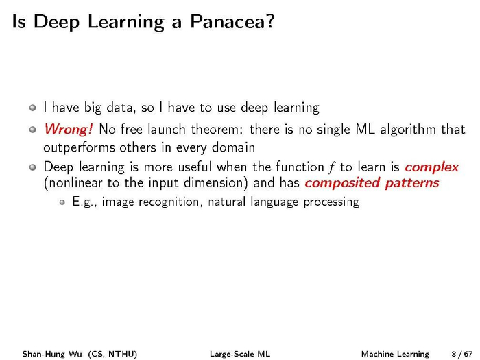 来自台湾国立清华大学吴尚鸿副教授主讲的《大规模机器学习》教程,内容包括深度学习概述与学习理论。