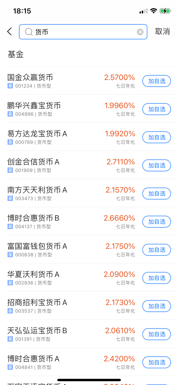 具体替换操作:在总资产页面,点击基金,搜索“货币”两个字,你就会看到一列产品名称,年化收益都在1.7%—2.7%之间。它们的风险与余额宝同样都是极低的,但我们可以选择年化收益更高的产品来替代余额宝。