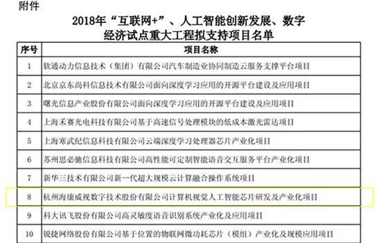安防双雄海康、大华不仅是AI芯片公司的重要合作伙伴,并早在2018年申报了AI芯片研发项目。