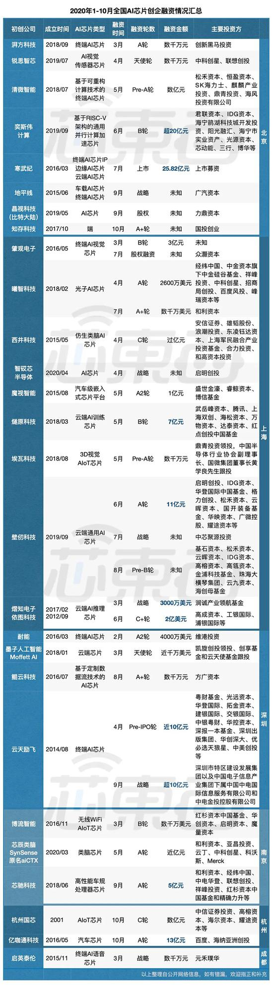 2020年中国AI芯片融资全景图:京沪争霸,四城抢人