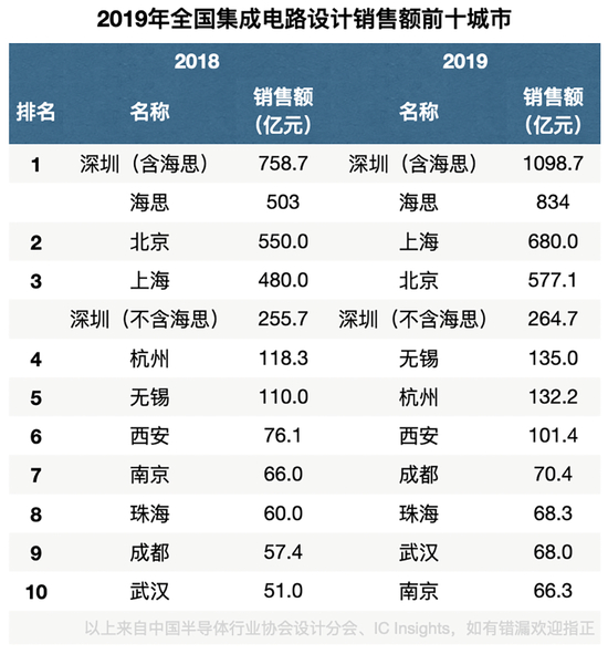 深圳IC设计业之所以能将京沪甩在身后,为其贡献了超过3/4销售收入的海思显然是最大功臣。