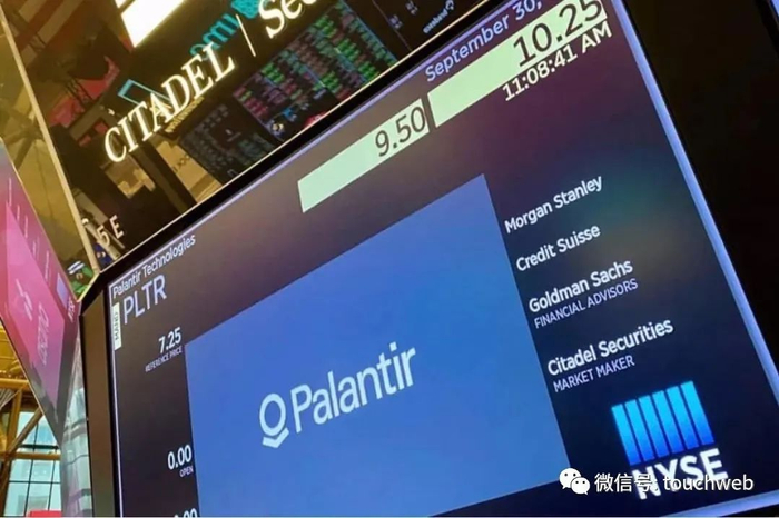Palantir是2020年9月30日在美国纽交所直接上市,发行价为7.25美元,上市当天收盘价为9.5美元,较发行价上涨31%。