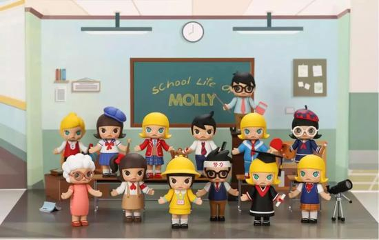 Molly是一个嘟着嘴巴,长着蓝色大眼睛,没有表情的小女孩形象。在被泡泡玛特发现之前,就是在香港的常规门店卖,销量并不好。