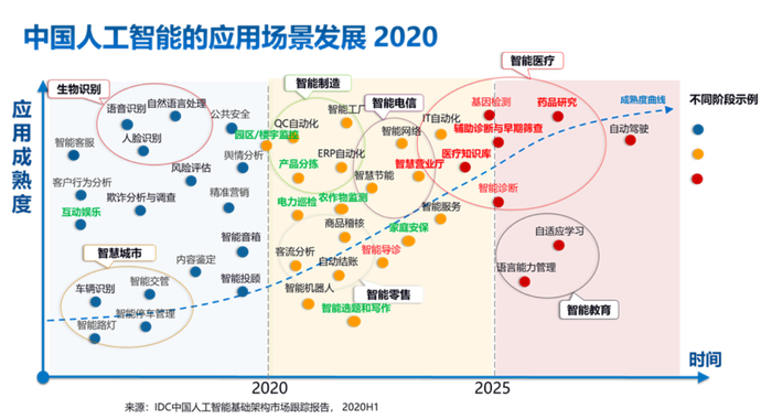 IDC预测,到2021年,各地方政府将会加大对AI产业的投资30%以上。各个城市在自身产业优势及各种因素推动下,AI应用取得了较大进展。例如东莞的智能制造、武汉的智慧医疗、合肥的智慧农业、重庆的人工智能课程等。
