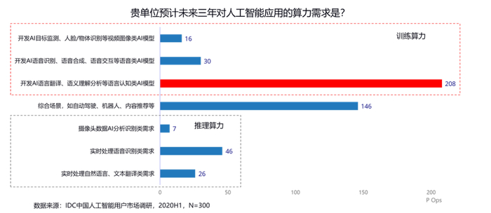 另一方面,IDC认为,未来三年,用户的算力还是集中在两个方面:训练和推理,其中,训练仍然是未来投资的主要方向,并且这个方向已经从纯感知的训练,图像识别,视频识别,语音识别,转向了对语意理解,纯感知到感知以后的推理分析。