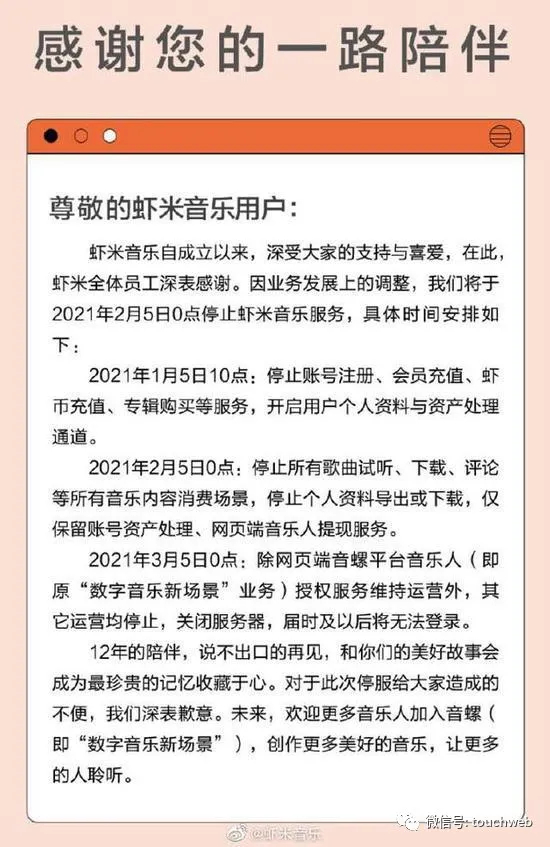 “12年的陪伴,说不出口的再见,和你们的美好故事会成为最珍贵的记忆收藏于心,对于此次停服给大家造成的不便,我们深感歉意。”