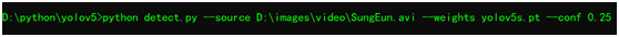 python detect.py --source D:\images\video\SungEun.avi --weights yolov5s.pt --conf 0.25