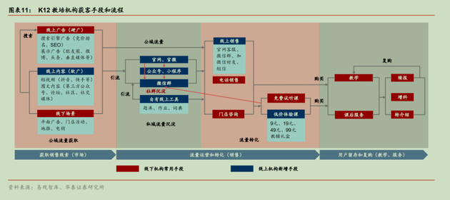 与传统电商购物习惯不同,在线教育的产品购买往往有着更长的决策周期。一份华泰证券的报告显示,教培机构往往需要多轮运营才能达成销售转化。因此,基于微信和短视频平台的内容营销,在打动用户心智和塑造IP上,较传统的硬广曝光有更大的优势。