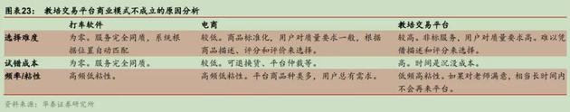 早期的猿辅导、跟谁学,以及传统教培机构新东方都曾尝试将交易平台作为主攻方向。但与电商、打车、外卖等行业不同,教育行业作为非标产品,有着决策难度高、试错成本高、使用频次低等特点,这导致教培行业,始终没有平台型公司出现。