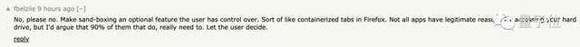 此外,有网友表示,希望“沙盒”功能能更多地应用到电脑上。相比于移动端,目前电脑上有“沙盒”功能的应用还是太少了。