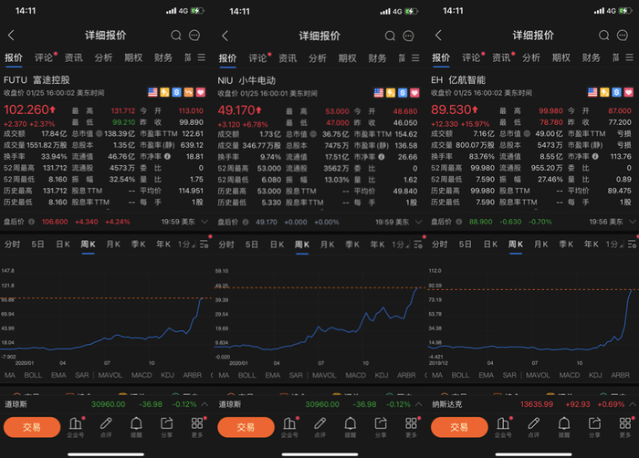 富途、小牛与亿航股价起飞, “新三傻”是大泡沫还是真实力?