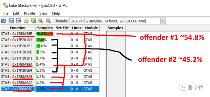 为了找出到底那一部分程序卡住了CPU,他使用了工具Luke Stackwalker,对CPU任务堆栈进行采样分析。