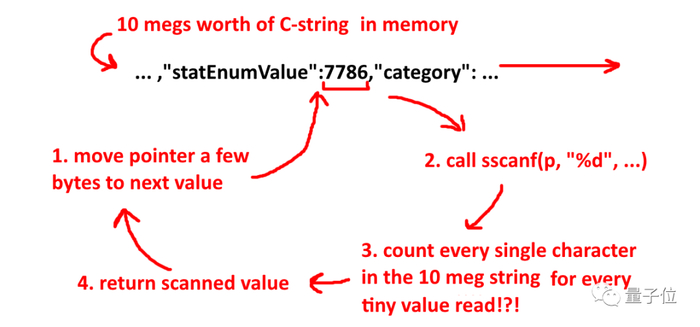 在具体运行时,sskanf对于每个有效值,逐个读取每一个字符,然后返回结果,之后指针移向下一个值,循环往复……直到把10M文件全部扫一遍。