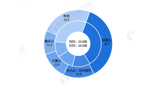 2018、2019年,中国公有云市场份额变化 pic/前瞻产业研究院