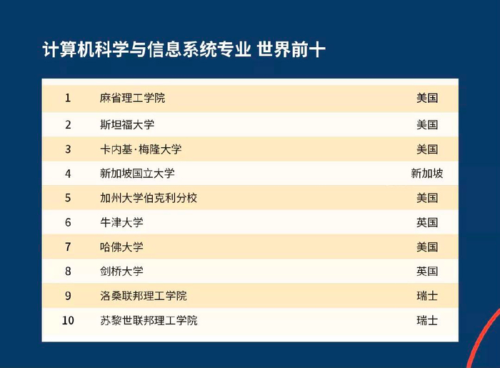 计算机专业排名:MIT、斯坦福、哈佛霸榜前三