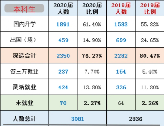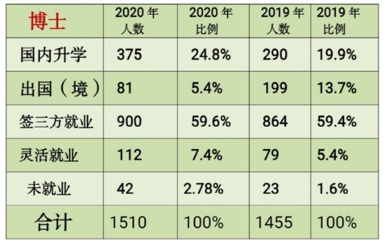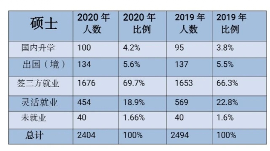 而硕士学历上,留学出境比例与2019年持平。