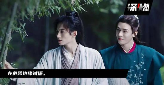 《陈情令》中蓝忘机一句“我想带一人回云深不知处,带回去,藏起来”就已经算是大尺度,被剧迷视为意难忘的名场面台词,但在《山河令》里,温客行对周子絮用挑逗的眼神打量、心疼的看向对方、拉开肩膀吸毒液等情节,更给了观众二次联想的空间。