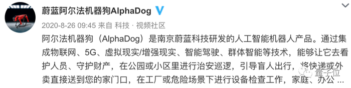“阿尔法机器狗”,出自南京蔚蓝智能科技有限公司,于2019年成立。