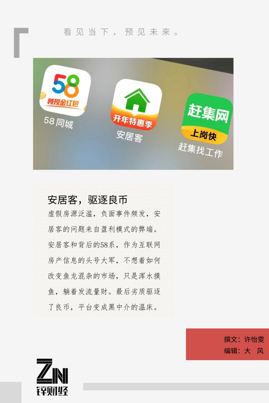 即便安居客现在渗透率、用户时长等方面依旧占有一定优势,但是在品牌信誉被严重透支靠的情况下,安居客的未来能够讲出什么新故事?