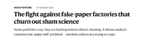 3月23日,Nature发布了一篇标题为「The fight against fake-paper factories that churn out sham science」的文章,讲述了由论文撤稿引发的「造纸厂」反侦察。
