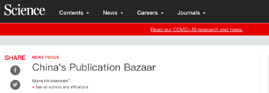 2013年,《科学》报道了中国研究论文的作者资格市场。