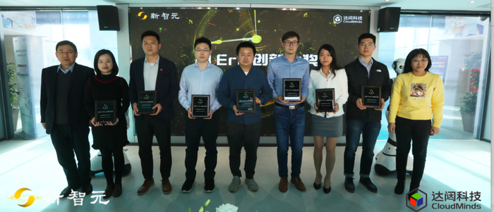 中关村软件园孵化器任萍总经理和达闼科技副总裁葛颀为新智元AI Era创新大奖2020年AI创新先锋TOP 30的企业代表进行了颁奖。任萍总经理表示欢迎创业公司多来孵化器做活动,并感谢各位来宾!大家在创业路上都不容易,软件园孵化器非常衷心地希望与大家在各个行业里展开合作,与大家活力链接。
