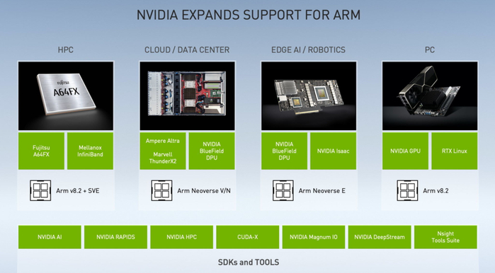 英伟达对Arm的支持范围:从超级计算机到个人和嵌入式系统