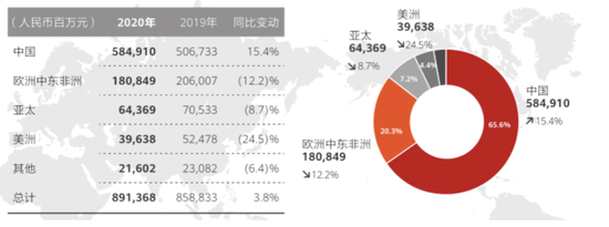 从销售区域看,华为国内市场实现收入5849.1亿元,同比增长15.4%,收入占比达到65.6%,较2019年提升6.6个百分点;受消费者业务无法使用GMS生态影响,华为欧洲中东非洲、亚太以及美洲等三大海外片区收入均出现不同程度的下降。其中美洲市场同比下降24.5%,下滑幅度最高。