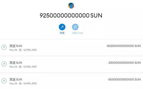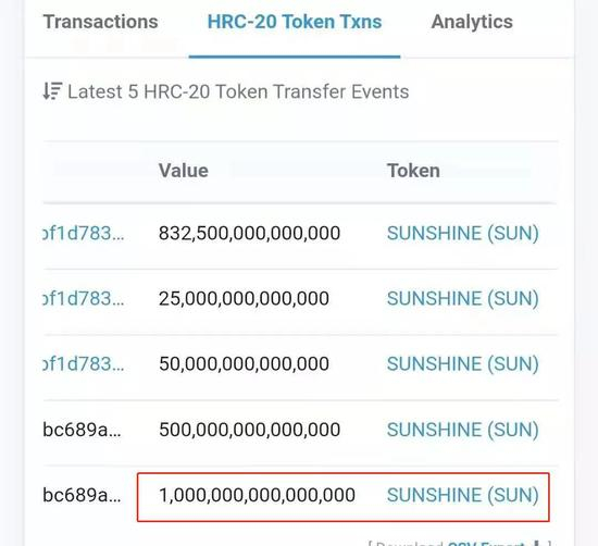 复制代币发行交易的哈希值到火币区块链网站上,就能清楚地查到这比 1 千亿的“ 太阳币 ”横空出世。