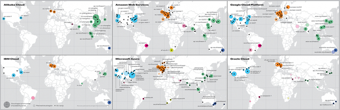 云能力在今年首次被呈现在互联网地图上,因为云已经是数字化趋势下与网络同样重要的基础设施。但云服务有复杂的区域化、地缘化、云生态等特性,因此只能宏观的展示出提供商的全球性基础能力。