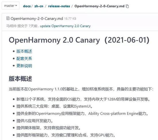 对应的,鸿蒙所属的开源项目 “ OpenHarmony ” 里面的代码也被更新到了 2.0 测试版。