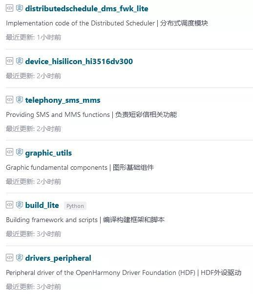 目前这个开源版本的 OpenHarmony 里已经包含华为研发鸿蒙的各种心血:总共 227 个软件仓库,其中包含了内核、硬件虚拟化、图形组件、等等让一款操作系统跑起来所需要的所有组件。