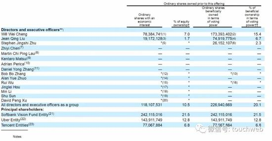 IPO前,软银持股为21.5%,Uber持股为12.8%,腾讯持股为6.8%。