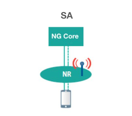 SA(5G Standalone Architecture),5G独立组网架构,指5G NR直接接入5G核心网(NG Core),不再依赖4G,是完整独立的5G网络。