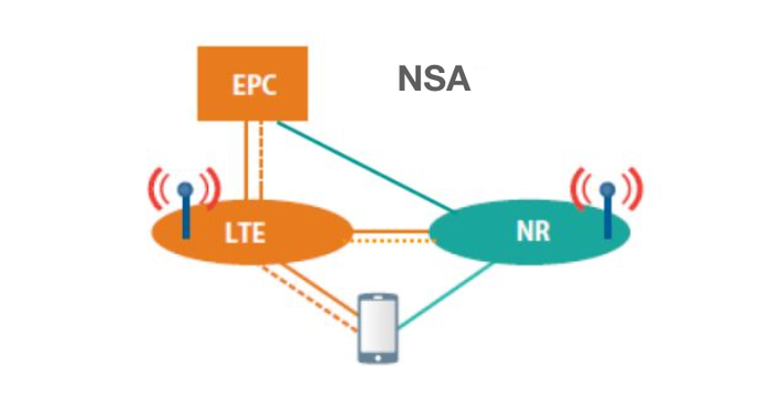 NSA(5G Non-Standalone Architecture),非独立组网,指采用双连接方式,将5G NR控制面锚定于4G LTE,并利旧4G核心网EPC。NSA是5G早期的部署架构,旨在利旧现有的4G基础设施快速扩展5G网络。