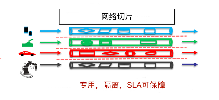 Network Slicing,网络切片,指根据不同行业客户或应用对网络带宽、时延、安全性、可靠性、地理覆盖范围等SLA需求,从端到端网络基础设施上按需 “切”出多个相互隔离的、安全的、SLA可保障的逻辑网络。