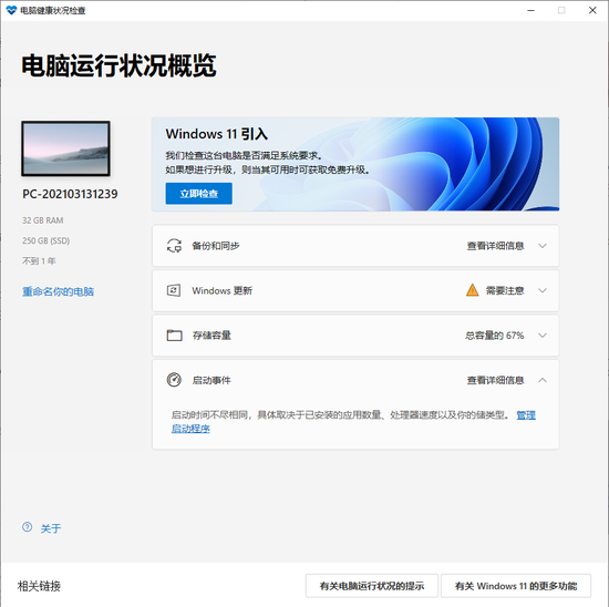 你可以下载微软官方的“电脑健康状况检查”(PC Health Check)软件[2]来检查系统软硬件是否满足升级 Windows 11 的要求。