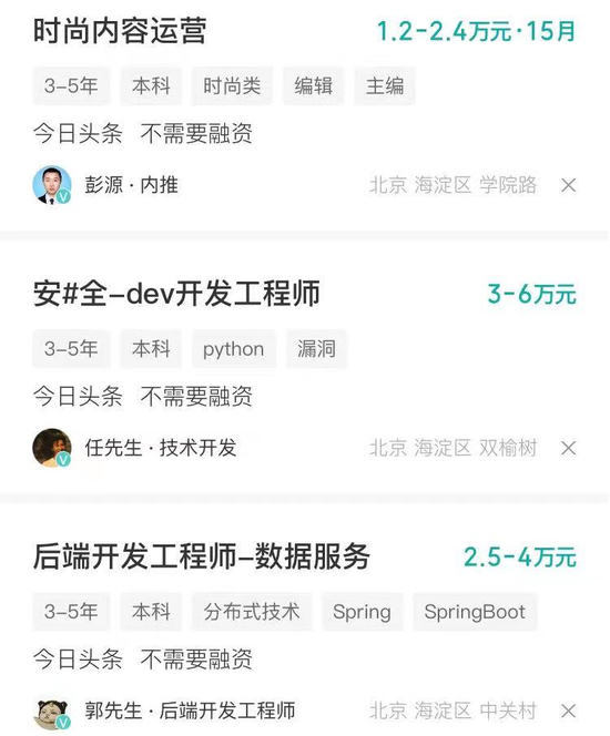 对于认为内推优于普通投递的求职者,这是一件好事。但是对于想找HR投递简历的求职者,Boss直聘上发布岗位的“程序员”、“商务运营”人员,则令人困惑。