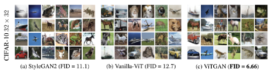 因此,团队引入了新的正则化技术来训练带有ViT的GAN,得出以下研究结果: